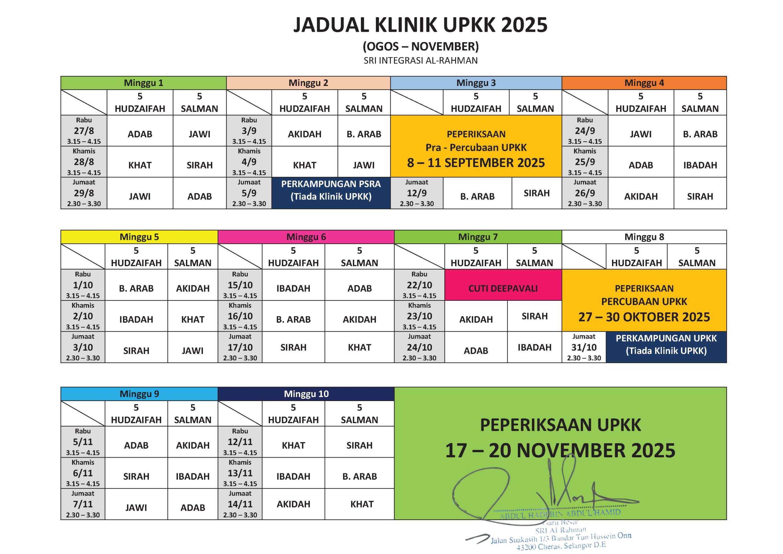 Jadual KLINIK UPKK 2025